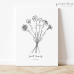 Celebrate a special day in the most enchanting way with our Personalized Birth Flower Artwork. Each month has its own unique flower that symbolizes the qualities of those born in it, and our artwork brings this beautiful tradition to life with a contemporary twist.